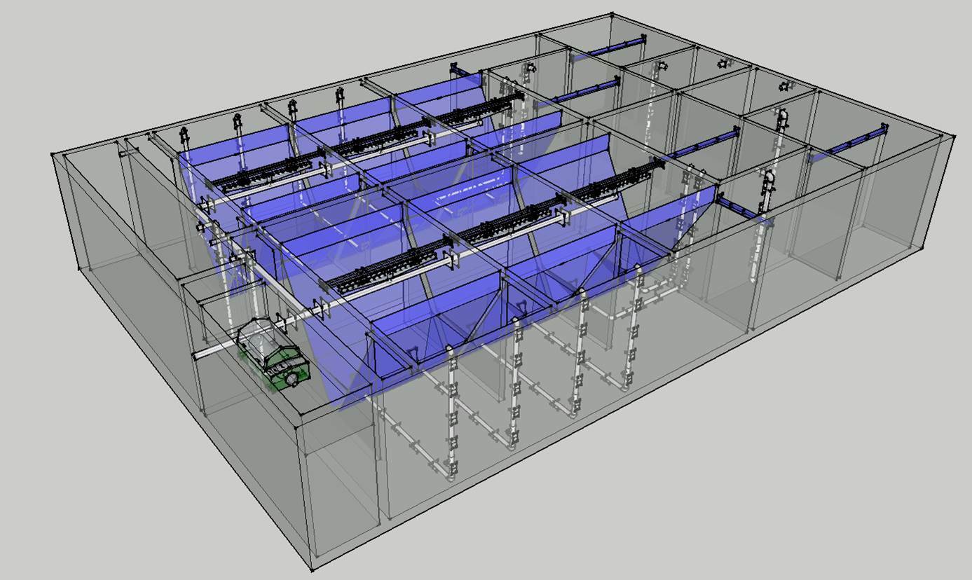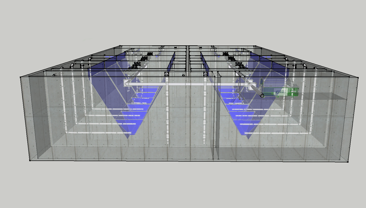 Strefa denitryfikacji (strefa beztlenowa i anoksyczna) to pionowy labirynt, w którym ścieki poruszają się w górę i w dół podczas oczyszczania. W ten sposób następuje naturalne hydrauliczne mieszanie ścieków z osadem czynnym.